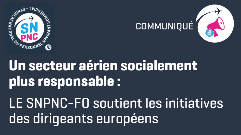 Communiqué : Le Syndicat National du Personnel Navigant Commercial (SNPNC-FO) représentant les hôtesses et stewards...