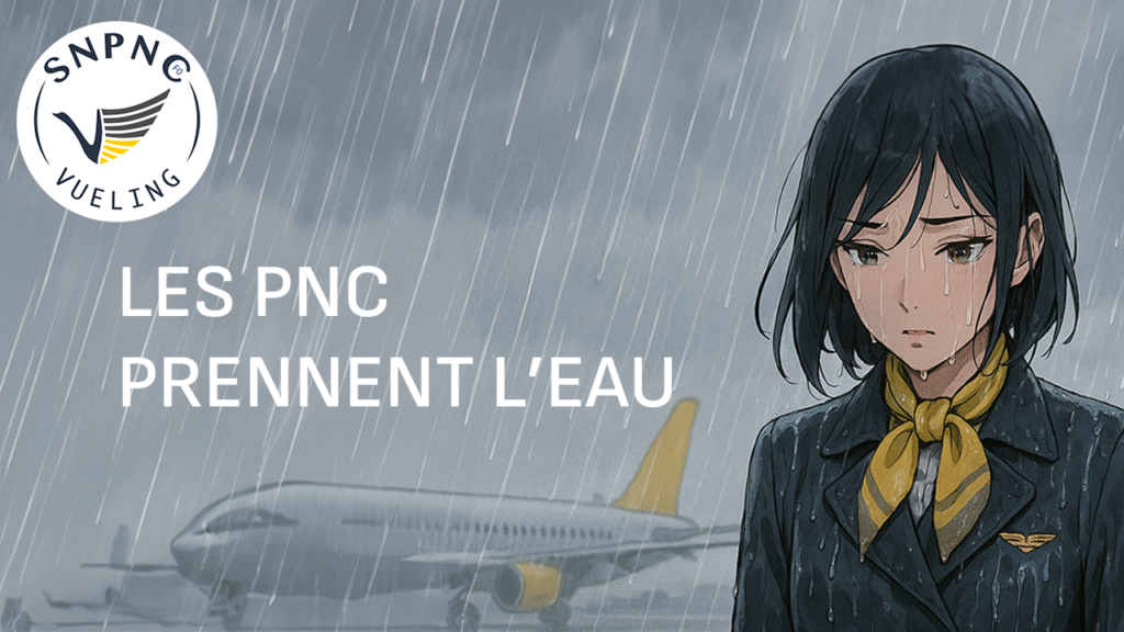 Les PNC prennent l’eau et toujours pas d’imperméable d’uniforme chez Vueling. Depuis des lustres, le SNPNC-FO alerte...