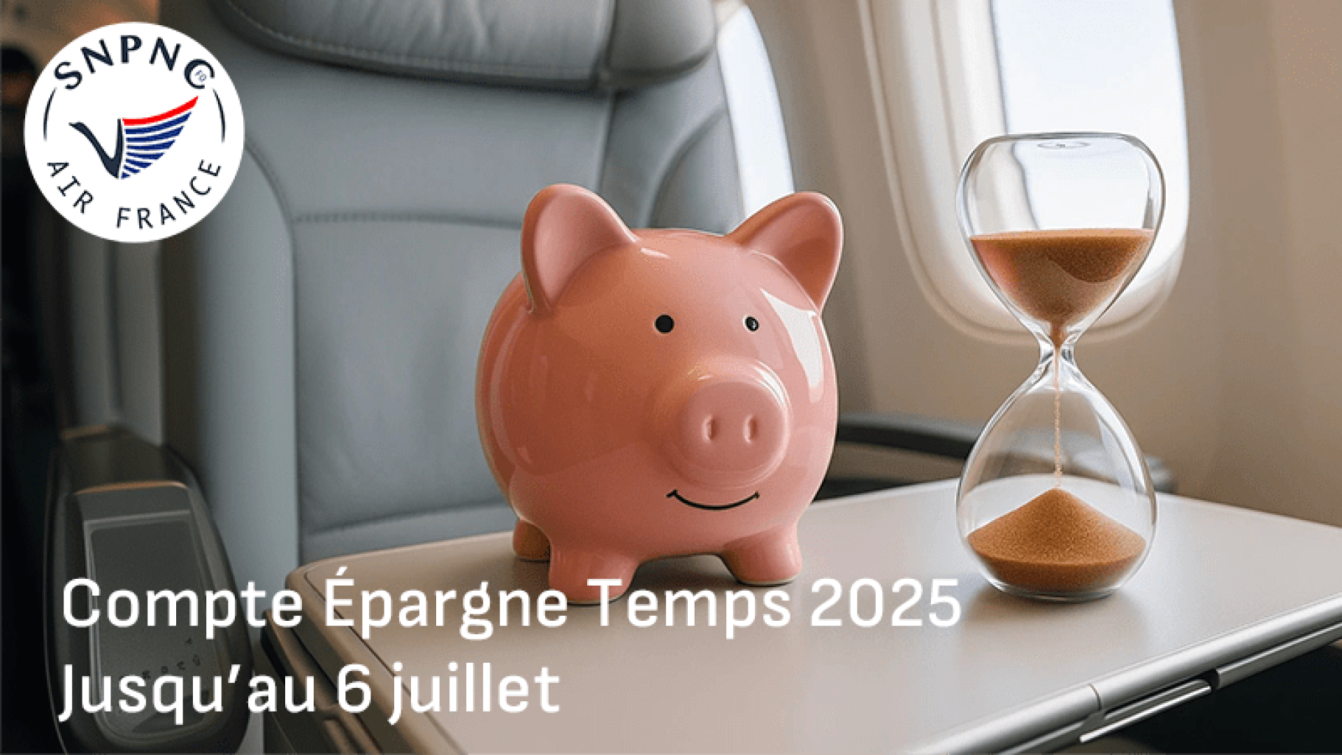 Un accord Compte Épargne Temps a été signé en décembre 2024 (SNPNC/FO – UNSA PNC – UNPNC- SNGAF). Ce dispositif est accessible aux PNC ayant 12 mois d’ancienneté minimum. Il permet de générer de nouveaux droits et de nouveaux choix sur l’utilisation de congés payés non pris qui génèrent des reliquats.