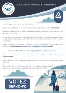 Du 20 au 26 Novembre 2025 votez SNPNC-FO (vote électronique uniquement).